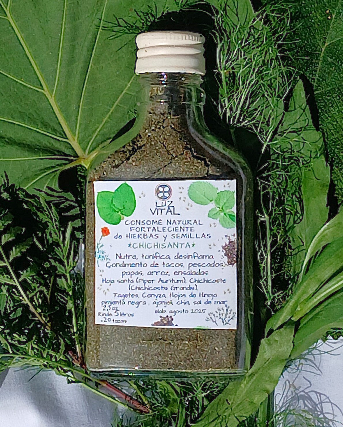 Experience the restorative wellness of our organic CHICHISANTA. This therapeutic hand made soup mix is a nourishing consomé of traditional herbs and seeds. It's an authentic artisanal product, made with pure, clean ingredients sourced through strict ethical sourcing practices.